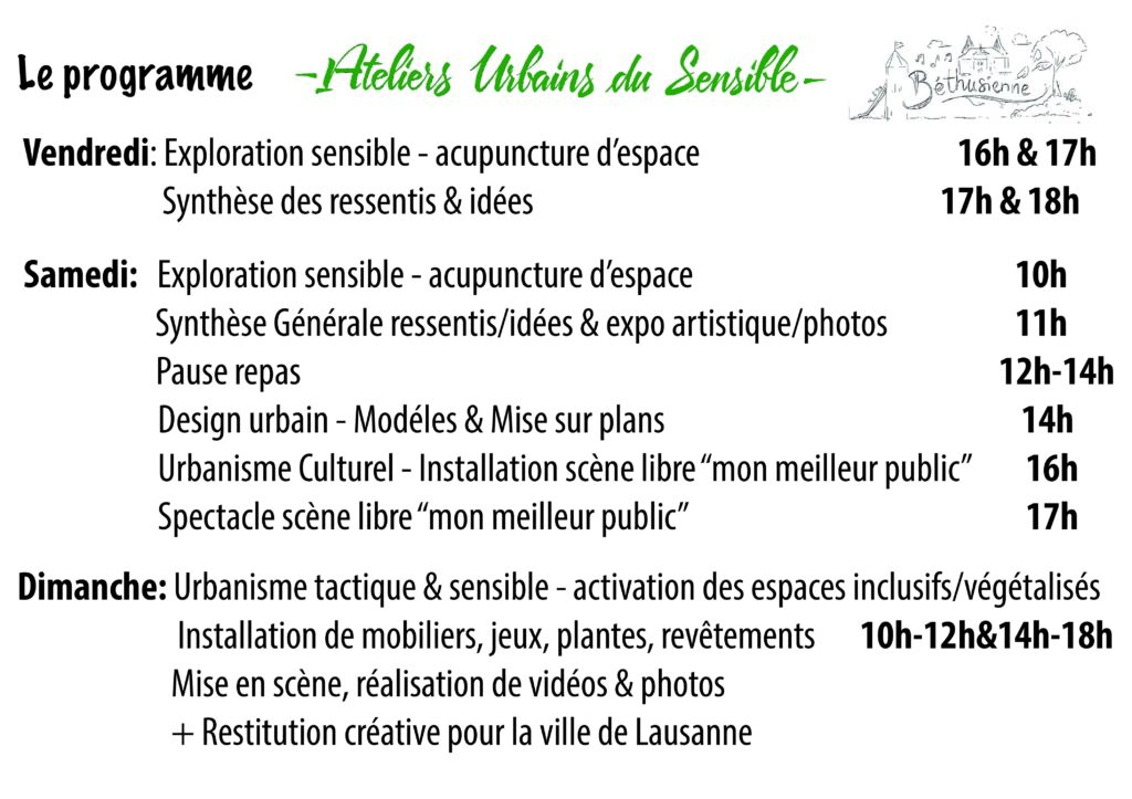 Participation des Ateliers Urbains du Sensible à la caravane des quartiers de Béthusy- Lausanne du samedi au dimanche 27 – 28 septembre 2025.